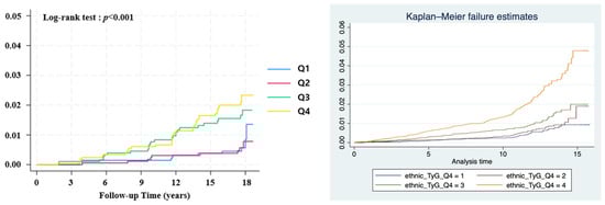 Figure 14. Cumulative incidence of gout according to TyG quartile in KoGES (left), UKBB (right).