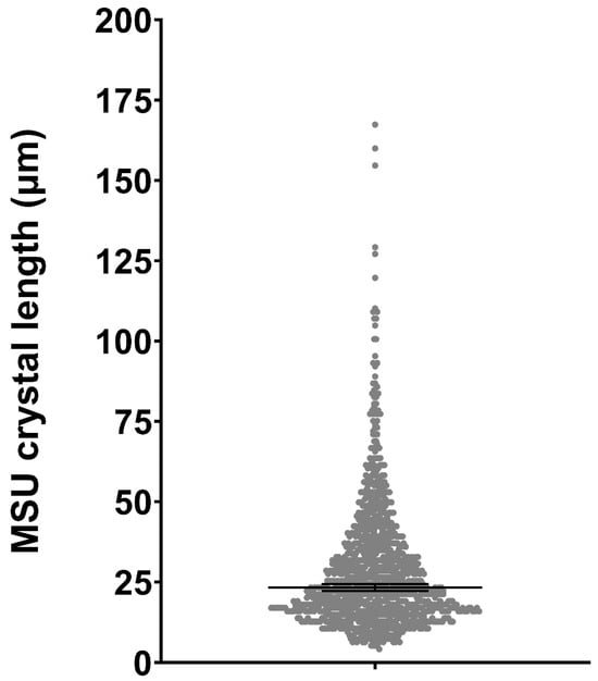 The following supporting information can be downloaded at: https://www.mdpi.com/article/10.3390/gucdd3040021/s1, Table S1. Correlations between the age of participants and the length of MSU crystals. Table S2. Comparative analysis between MSU crystal length, number of long crystals, and participants’ clinical characteristics.