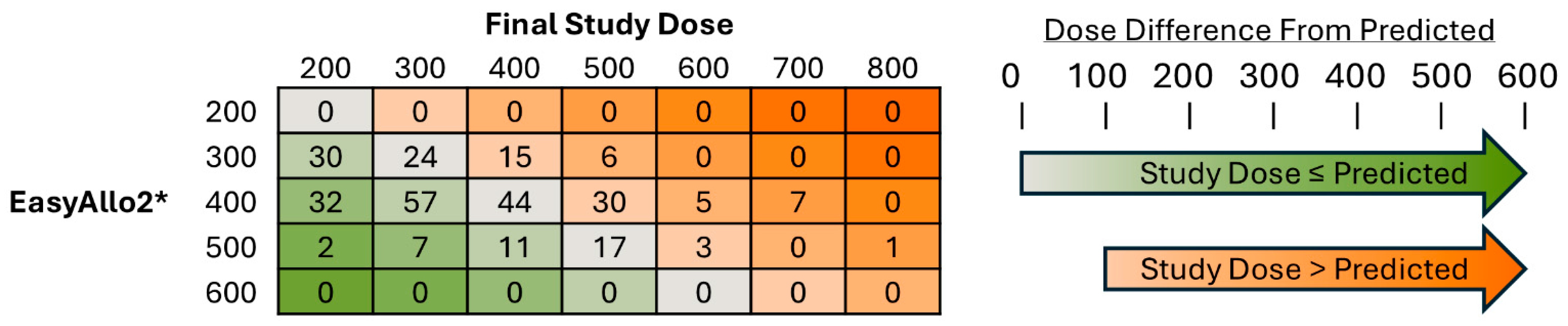 - Wright, D.F.B.; Hishe, H.Z.; Stocker, S.L.; Dalbeth, N.; Horne, A.; Drake, J.; Haslett, J.; Phipps-Green, A.J.; Merriman, T.R.; Stamp, L.K. The development and evaluation of dose-prediction tools for allopurinol therapy (Easy-Allo tools). Br. J. Clin. Pharmacol. 2024, 90, 1268–1279.