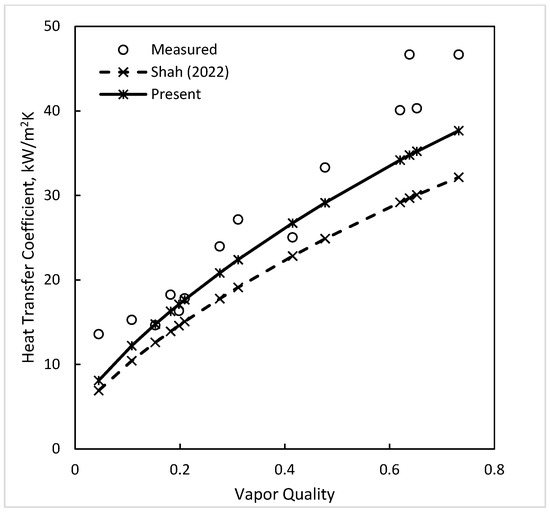 - Shah, M.M. Improved correlation for heat transfer during condensation in mini and macrochannels. Int. J. Heat Mass Transf. 2022, 194, 123069. [Google Scholar] [CrossRef]