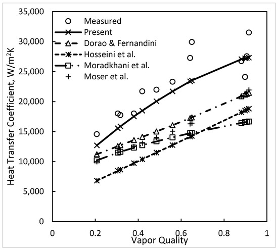 Many other correlations have been proposed for condensation in tubes. Among these, those which were reported to be in agreement with a wide range of data from many sources are Kim and Mudawar [18], Dorao and Fernandino [19], Hosseini et al. [20], Moradkhani et al. [21], Nie et al. [22], Marinheiro et al. [23], and Moser et al. [24]. Correlation of Traviss et al. [25] was derived from a theoretical analysis with many simplifying assumptions.