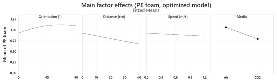 Figure 10. Main factor plots for PE foam.