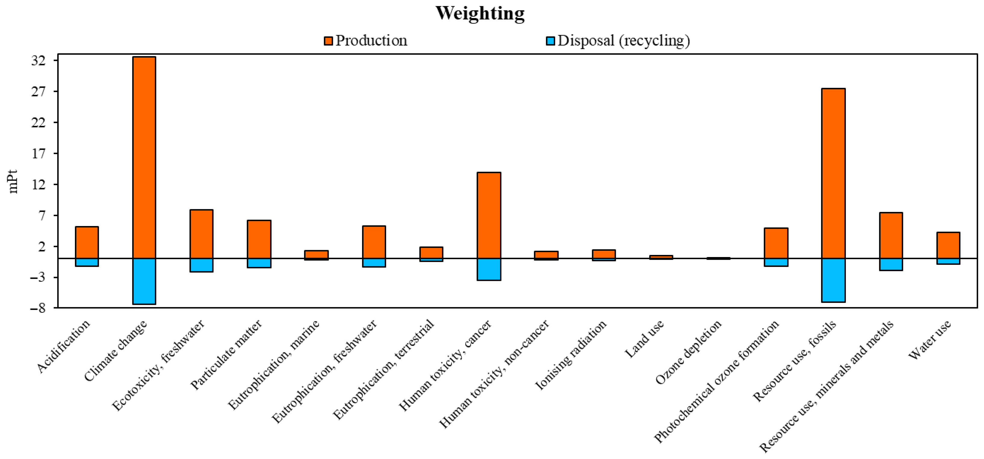 Impact Category | Unit | Production | Disposal (Recycling) |