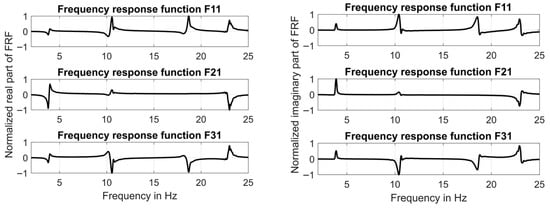 Real part and imaginary part of FRFs (F11 -> Left, F21 -> Middle, F31 -> Right).