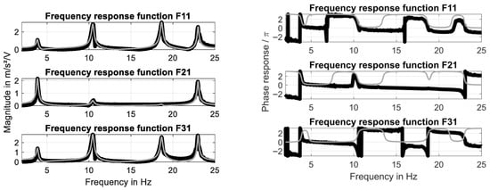 A comparison between the measured FRFs and the identified TFMs is shown in Figure 7. The match in magnitude is nearly perfect and the similarity in phase is sufficient considering the application of the simple PP method.