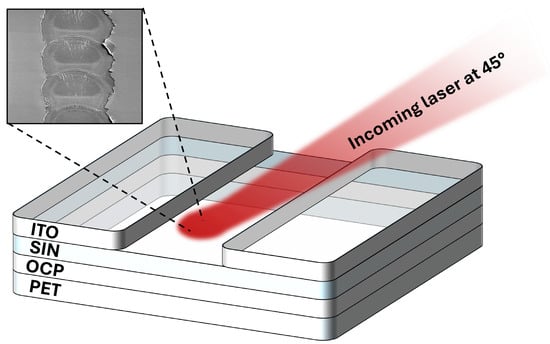 10. Risch, A.; Hellmann, R. Picosecond laser patterning of ITO thin films. Phys. Procedia 2011, 12, 133–140. [Google Scholar] [CrossRef]