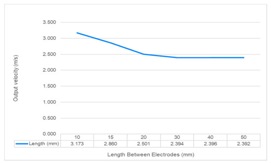 4] found that when using an electrode spacing of 50 mm to generate 50 mN/m of thrust, a voltage of 29 kV is required, whereas with a spacing of 300 mm, a voltage of 62 kV is needed, which is 2.1 times the amount of voltage needed with a 50 mm spacing. However, Xu et al. [