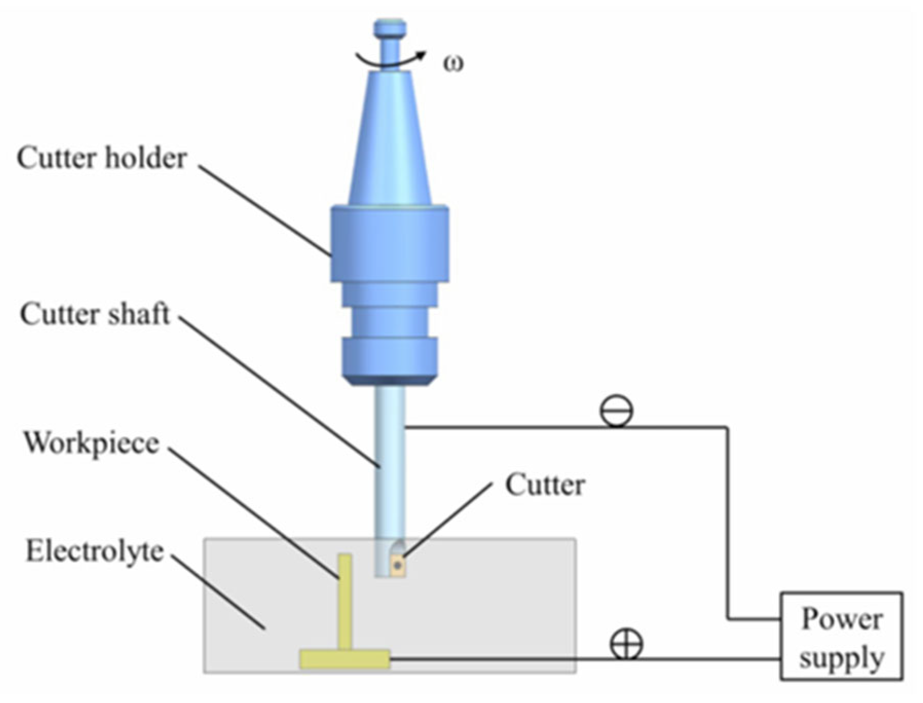 Figure 5 below highlights the EC milling process where the tool rotation and its direction is indicated by ω.