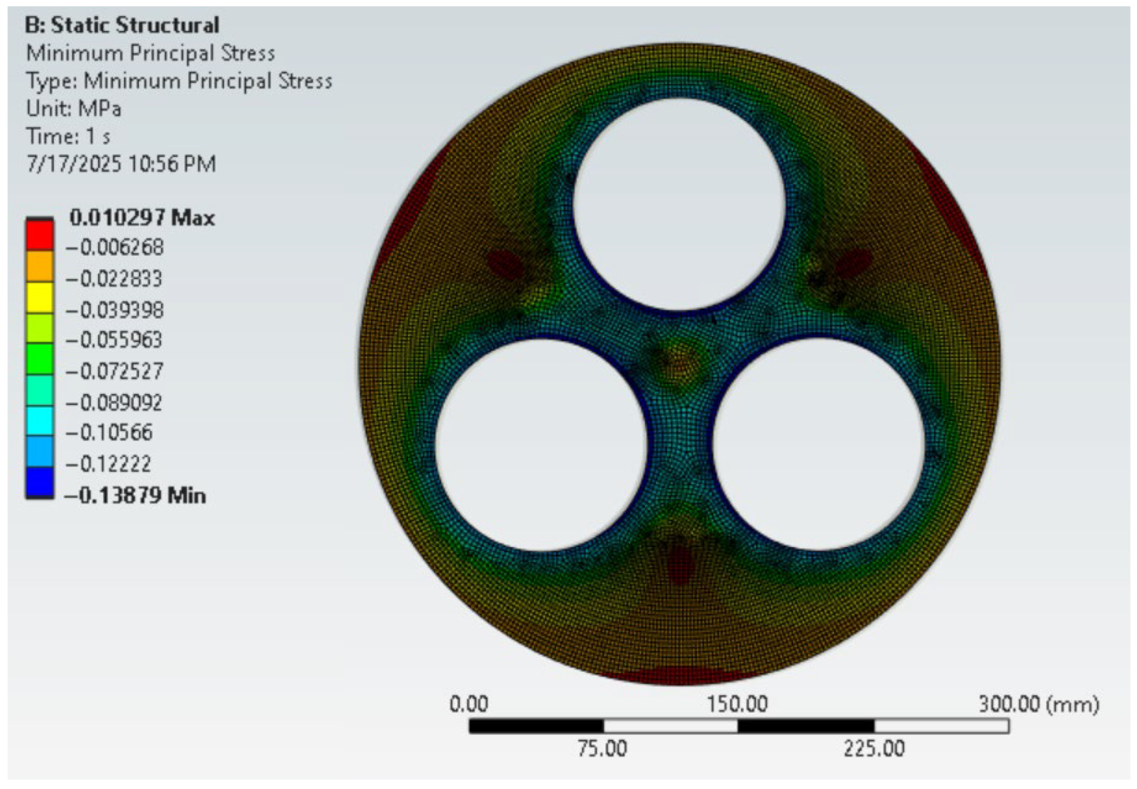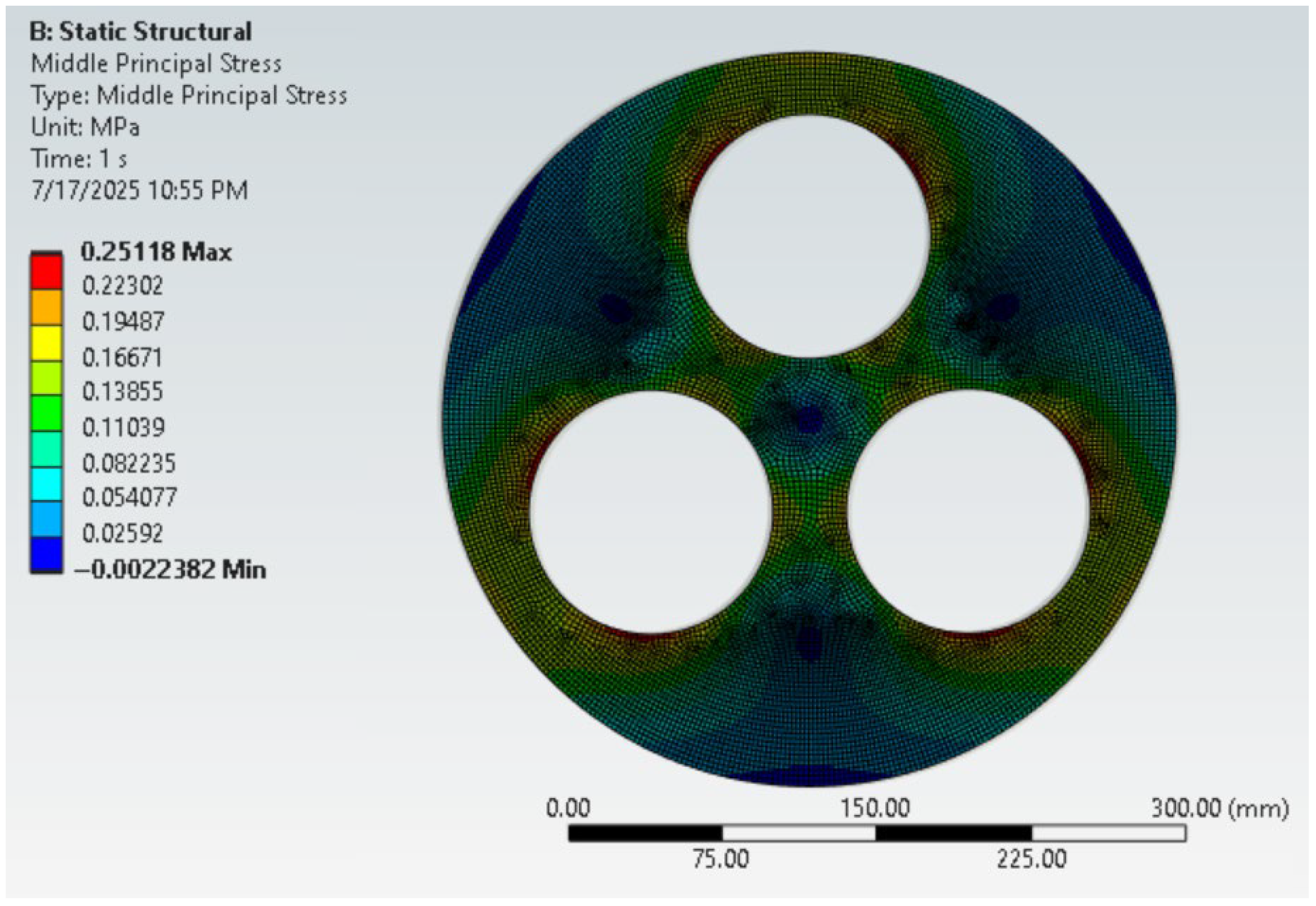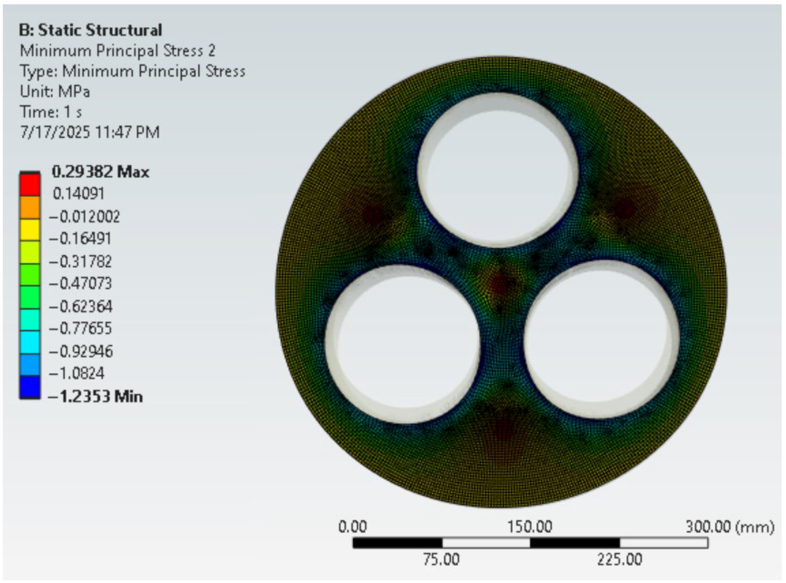 | Maximum Principal Stress (MPa) | Middle Principal Stress (MPa) | Minimum Principal Stress (MPa) | |