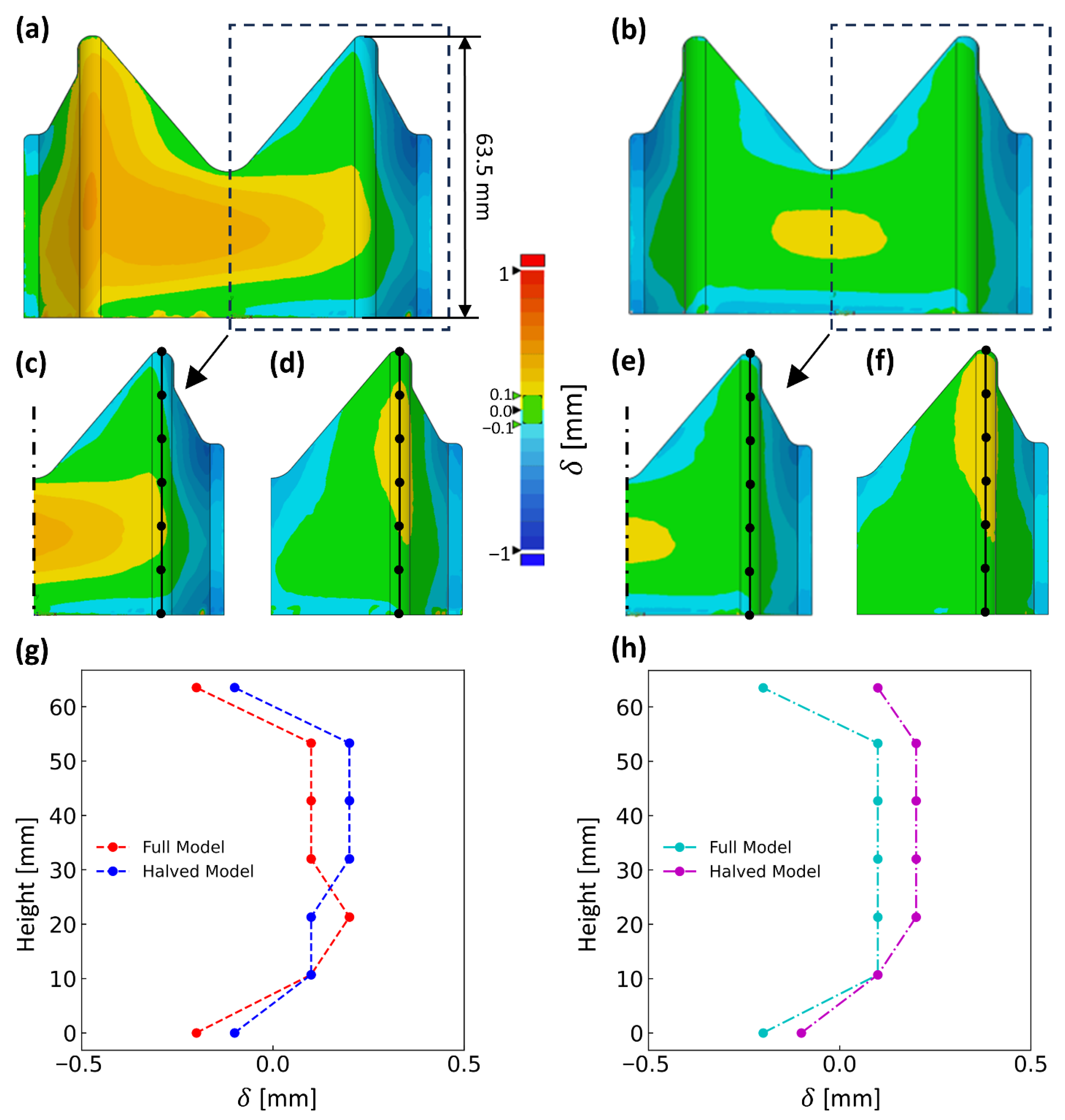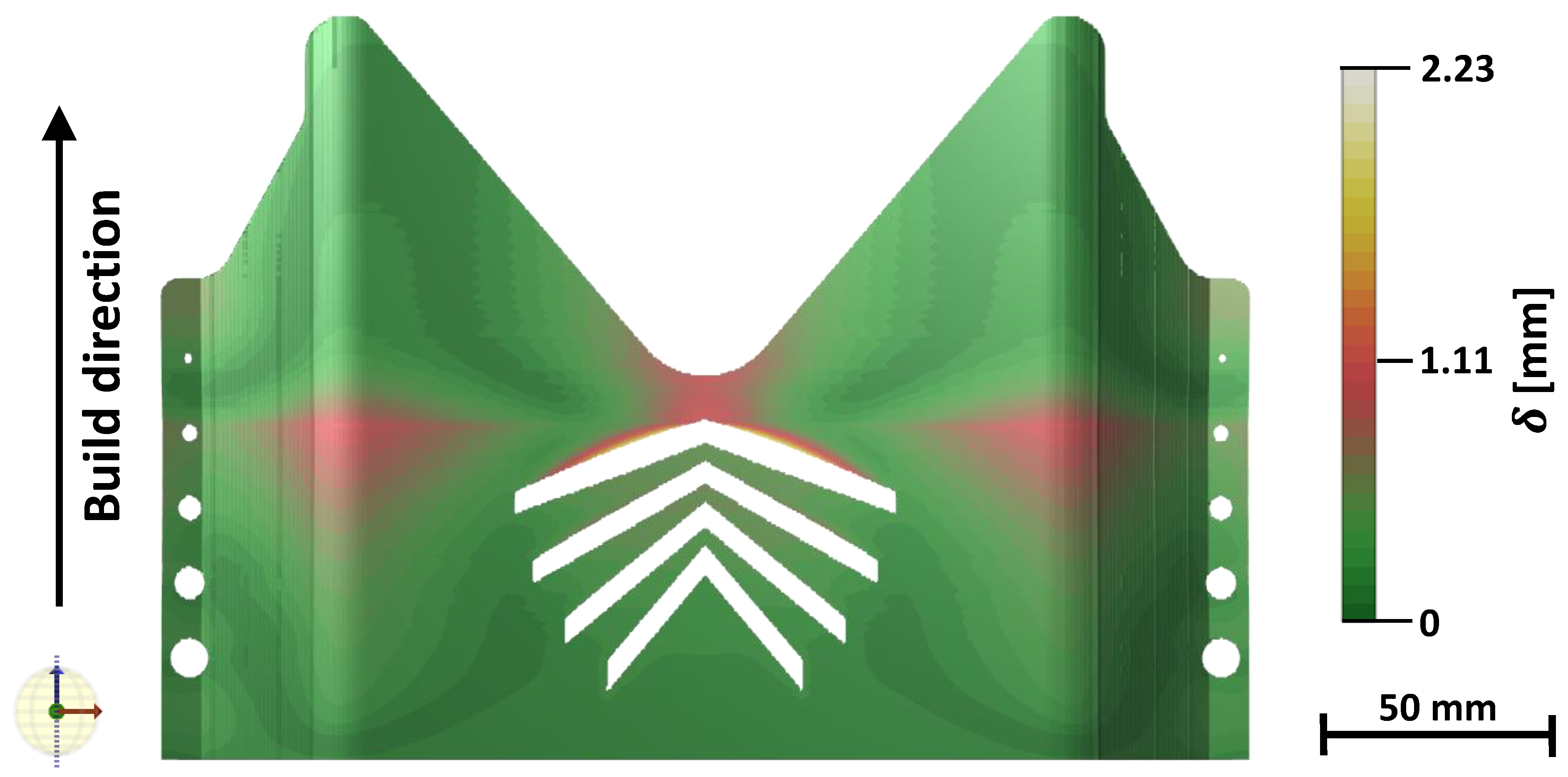 - Giubilini, A.; Calignano, F.; Galati, M.; Minetola, P. Assessment of simulation software for predicting induced distortions in laser-beam powder bed fusion of Ti6Al4V. Int. J. Adv. Manuf. Technol. 2025, 138, 1039–1054. [Google Scholar] [CrossRef]