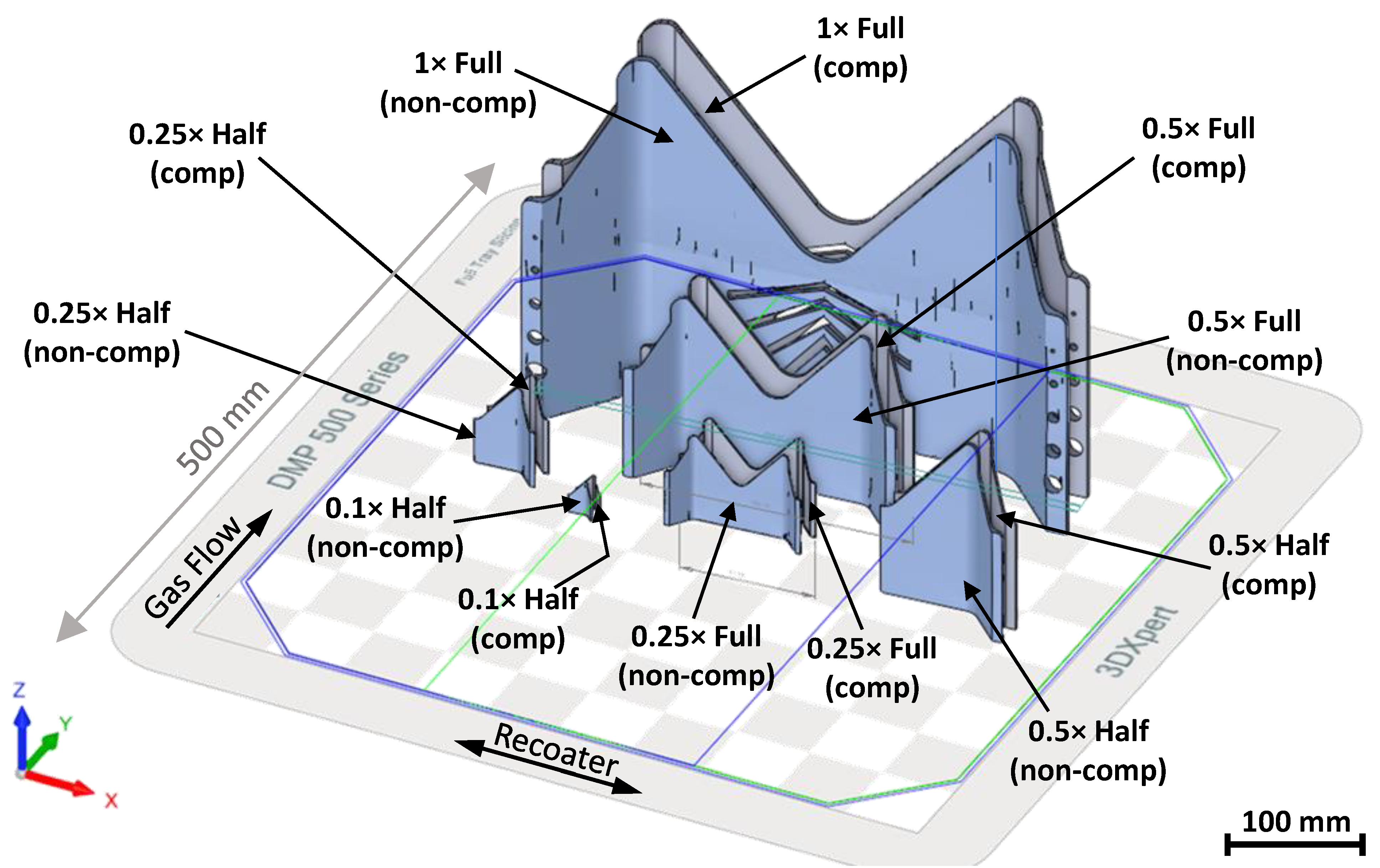 - Afazov, S.; Rahman, H.; Serjouei, A. Investigation of the right first-time distortion compensation approach in laser powder bed fusion of a thin manifold structure made of Inconel 718. J. Manuf. Process. 2021, 69, 621–629. [Google Scholar] [CrossRef]