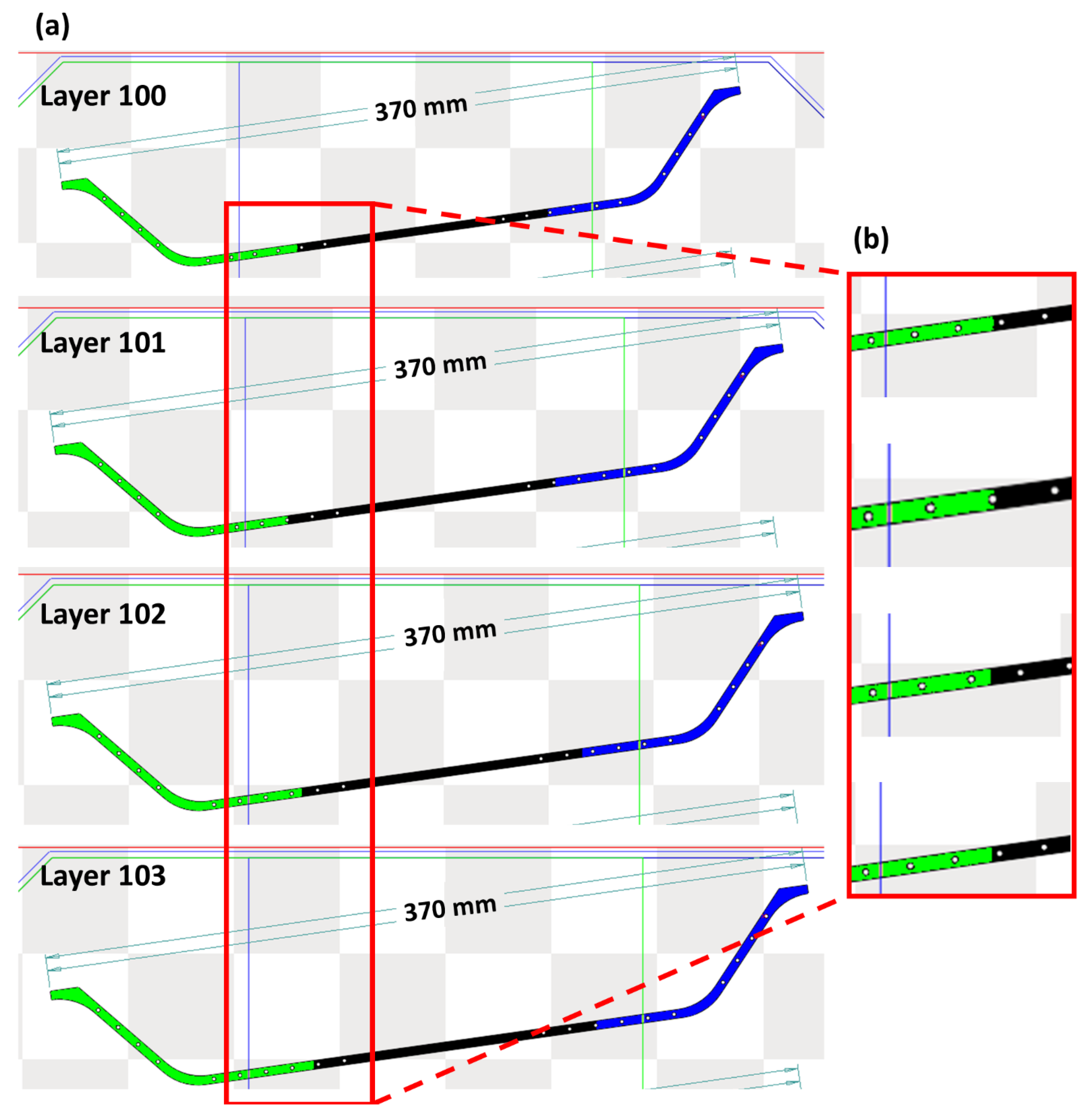 - Denlinger, E.R.; Heigel, J.C.; Michaleris, P.; Palmer, T.A. Effect of inter-layer dwell time on distortion and residual stress in additive manufacturing of titanium and nickel alloys. J. Mater. Process. Technol. 2015, 215, 123–131. [Google Scholar] [CrossRef]