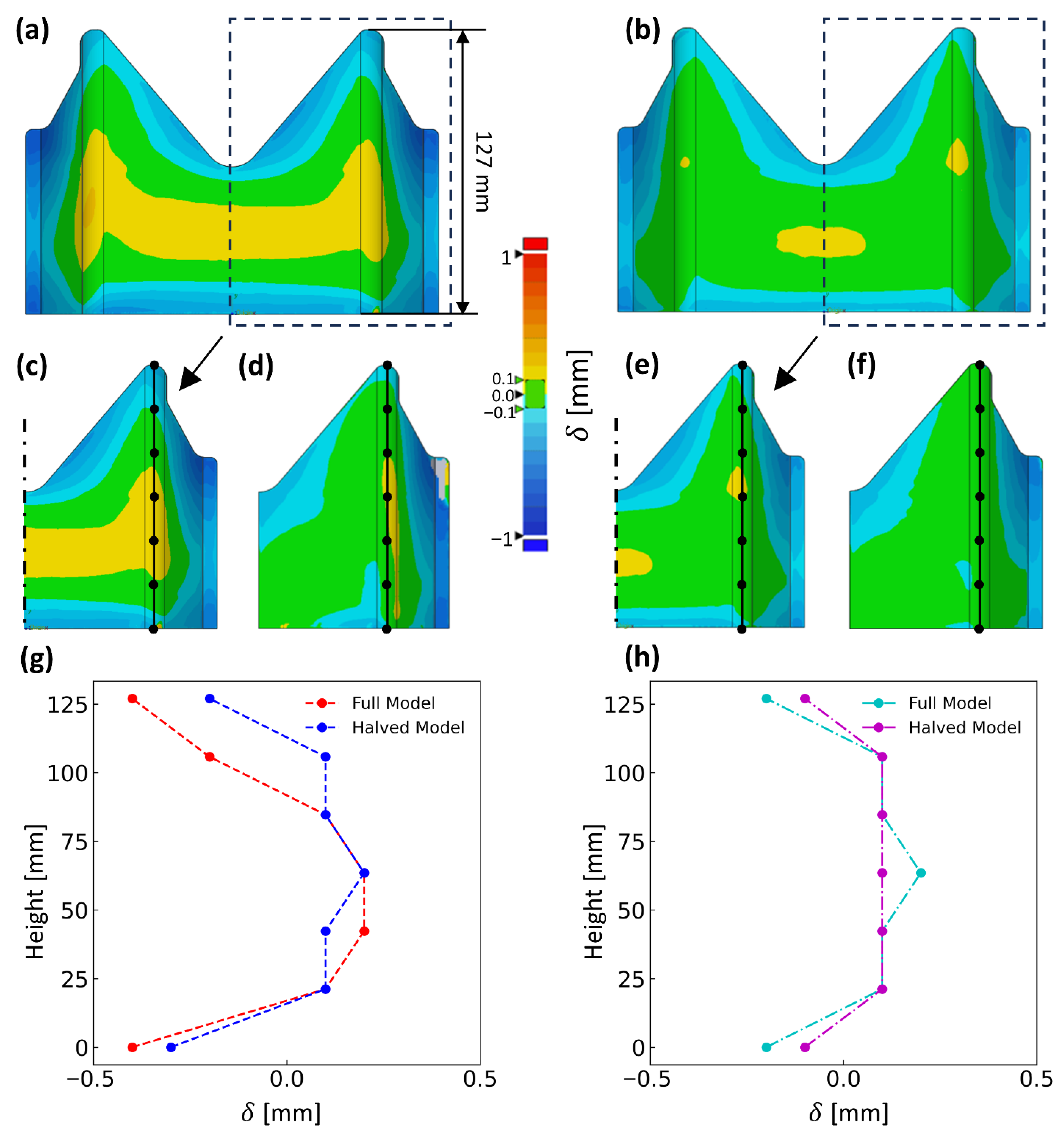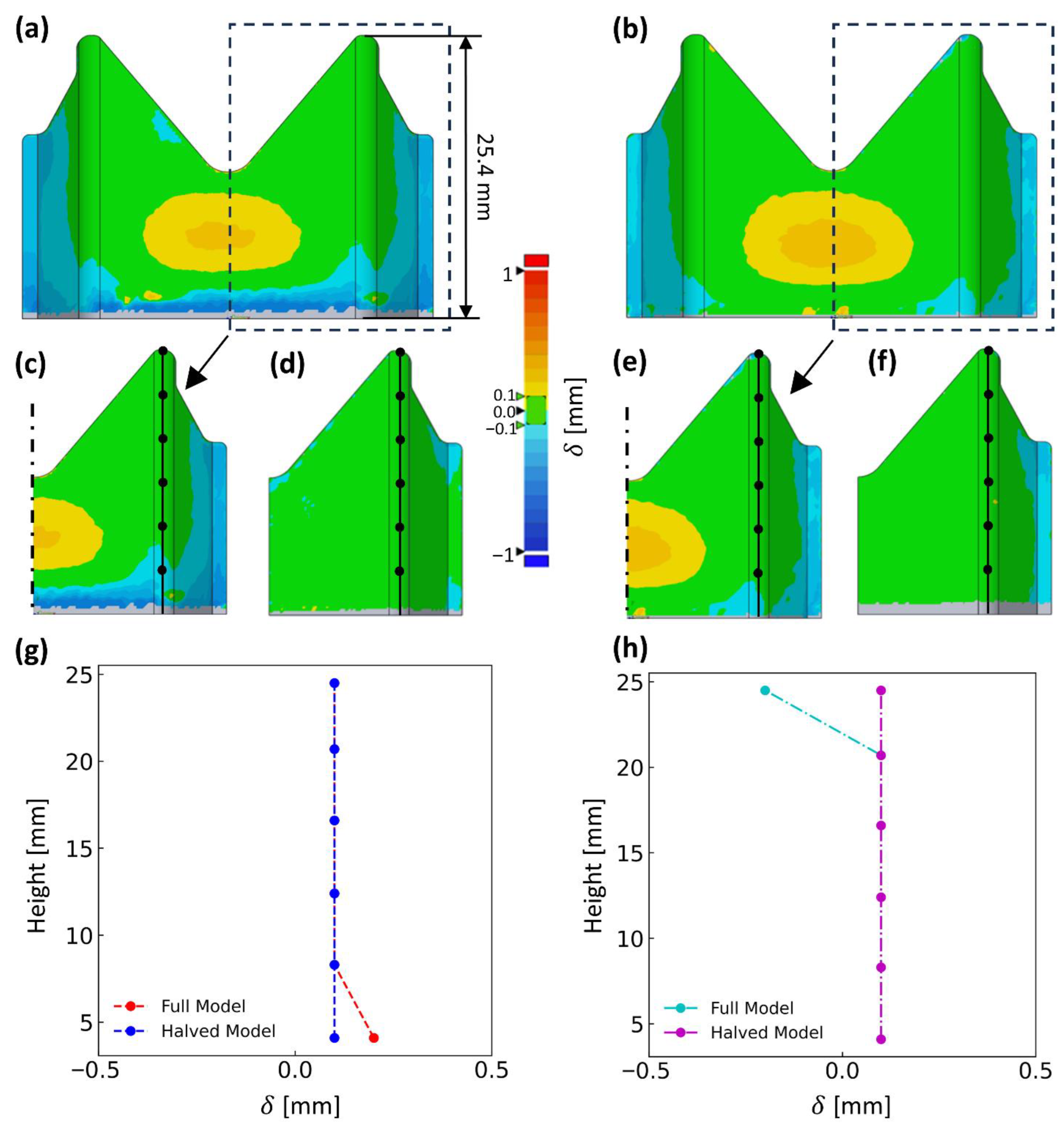 - Peng, H.; Ghasri-Khouzani, M.; Gong, S.; Attardo, R.; Ostiguy, P.; Rogge, R.B.; Gatrell, B.A.; Budzinski, J.; Tomonto, C.; Neidig, J.; et al. Fast prediction of thermal distortion in metal powder bed fusion additive manufacturing: Part 2, a quasi-static thermo-mechanical model. Addit. Manuf. 2018, 22, 869–882. [Google Scholar] [CrossRef]