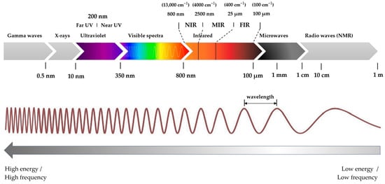 Spectroscopy examines how light interacts with matter. Light is a type of electromagnetic radiation carrying a specific energy level. This energy depends on the light’s frequency; as the frequency increases or the wavelength decreases, the light energy rises [25].