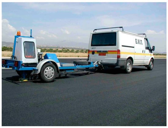 The master curve of E* can be determined based on data obtained by laboratory tests with special equipment or by prediction algorithms. For in-service pavements, non-destructive testing (NDT) methods are becoming increasingly popular for the efficient evaluation and estimation of mechanical properties, such as stiffness. FWD (falling weight deflectometer) and GPR (ground penetrating radar) data are used as inputs for estimating asphalt layers (as well as unbound layers) through a backcalculation process [5]. Although a dynamic load is applied and the time history of deflections is recorded during FWD testing, only the peak deflection is considered in the analysis. Therefore, the modulus of stiffness estimated by backcalculation is the modulus of elasticity.