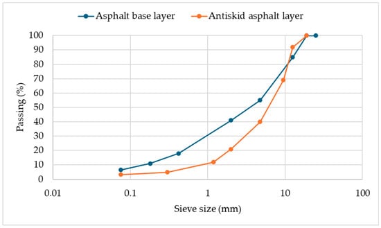 Aggregate gradation of the asphalt layers.