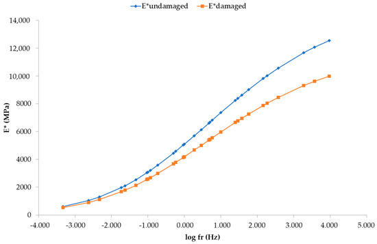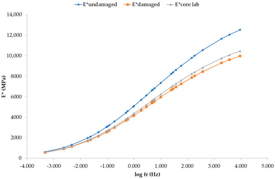 These E* values were used for the development of the undamaged E* master curve at the selected reference temperature of 20 °C presented in Figure 7.