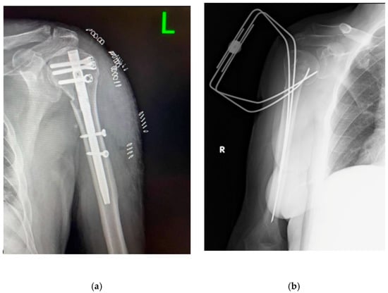 - Jaberg, H.; Warner, J.J.; Jakob, R.P. Percutaneous stabilization of unstable fractures of the humerus. J. Bone Joint Surg. Am. 1992, 74, 508–515. [Google Scholar] [CrossRef] [PubMed]