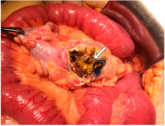 - Hafner, J.; Tuma, F.; Hoilat, G.J.; Marar, O. Intestinal Perforation; StatPearls: Treasure Island, FL, USA, 2024. [Google Scholar]