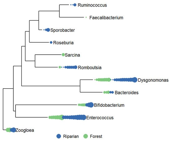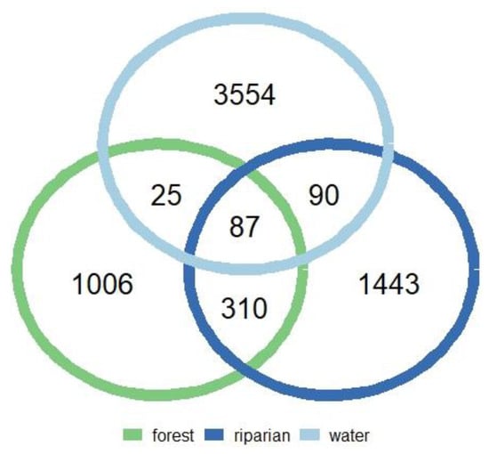 3.2. Comparing Bacterial Communities in Riparian and Forest Ecosystems
