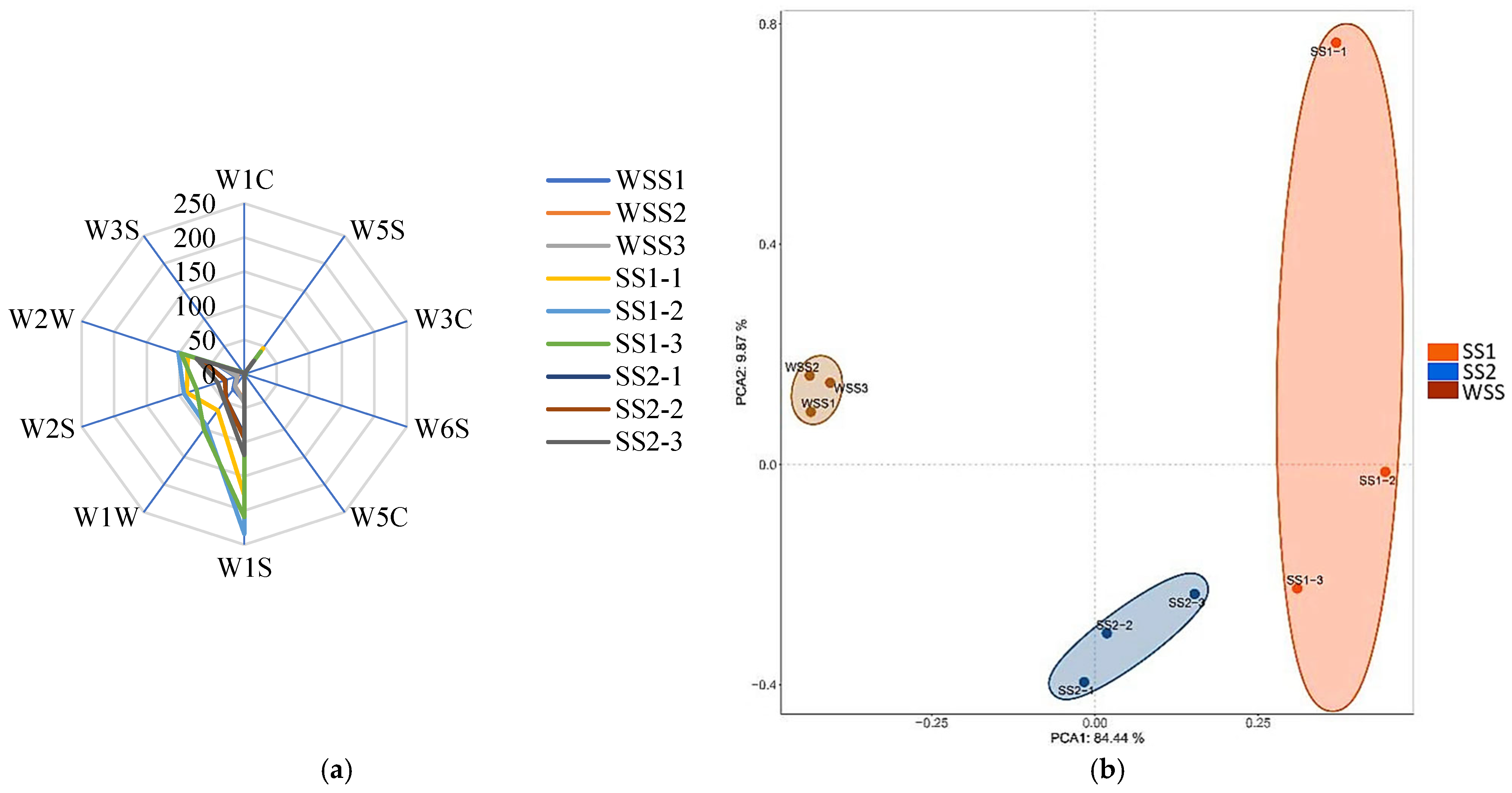 | WSS | 4.37 ± 0.01 a | 9.75 ± 0.19 b | 2.04 ± 0.04 a | 2.02 ± 0.03 a | 24.05 ± 0.48 c | 2.53 ± 0.21 c |