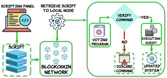 Figure A5 shows the time it takes to generate a block, with the number of voters on the horizontal axis and the time in seconds on the vertical axis. The blue line represents block modularity with Dilithium-2, and the green line represents block modularity alone.