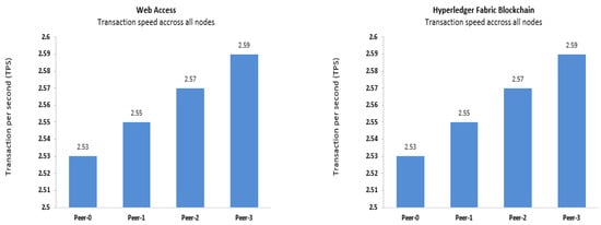 The integrity of the proposed framework is ensured through a meticulous investigation of the transaction per second (TPS) across all peers. TPS values recorded on the web page management node one were compared to the values captured in the blockchain peers, with results demonstrating consistency and accuracy. This verification ensures the authenticity of all transactions across the blockchain network. Notably, the immutable nature of the blockchain architecture guarantees that any tampering with evidence would require altering data across all peers in the network, a task rendered practically infeasible by the distributed and consensus-driven blockchain design, as evidenced in Bitcoin technology [19,51].