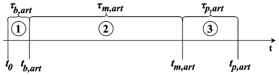 The probability that a miner solves the mathematical challenge is directly proportional to its relative hash rate [28,29,30]. From a temporal standpoint, we indicate the mining time with the following: