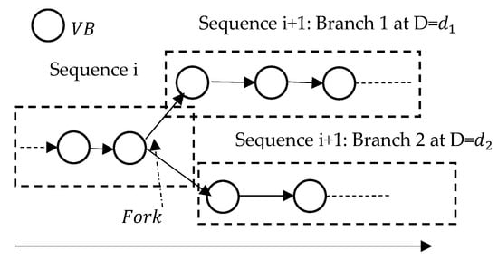 In contrast, when a fork occurs at the border between two consecutive VB sequences, as shown in Figure 8, the value of Difficulty differs across Block Tree branches, and consequently, different branches correspond to different VB publication deadlines. In this case, switching from one branch to another requires VB Publication Deadline recalculation. GD-VP addresses this issue by enabling rapid VB Publication deadline updating through recursive deadline calculation.
