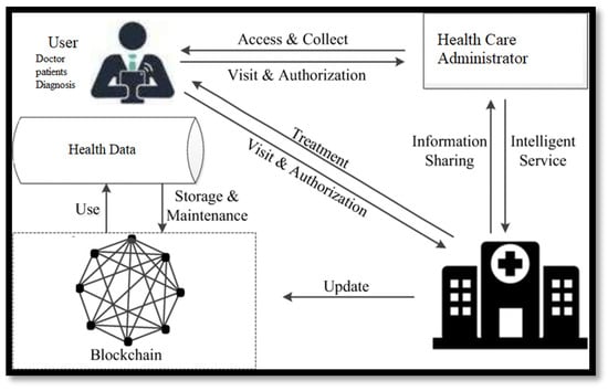 The exponential growth of digital healthcare systems and the widespread adoption of electronic health records (EHRs) have revolutionized the way medical data is collected, stored, and utilized. However, these advancements have also introduced significant challenges related to data security, privacy, and interoperability. Healthcare organizations, being custodians of sensitive patient information, are increasingly vulnerable to data breaches, unauthorized access, and other cyber threats []. According to recent reports, healthcare data breaches have surged in frequency, compromising millions of patient records globally and underscoring the urgent need for robust data management and sharing frameworks [,]. To address these challenges, blockchain technology has emerged as a transformative solution that offers unparalleled security, transparency, and decentralization for managing healthcare data. Blockchain technology, initially introduced as the foundation of cryptocurrencies like Bitcoin, has evolved to find applications in various domains, including supply chain management, finance, and healthcare []. The fundamental attributes of blockchain—decentralization, immutability, transparency, and cryptographic security—make it particularly suitable for addressing the complex requirements of healthcare data sharing. In a blockchain-based system, data is stored in a decentralized ledger that is distributed across anetwork of participants. Each transaction on the blockchain is verified through consensus mechanisms and secured using advanced cryptographic techniques, ensuring data integrity and resistance to tampering [,].