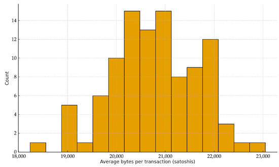 Figure 14 shows the distribution of per-transaction costs across systems, centered around 20–22 k satoshis. This empirical estimate confirms our earlier theoretical calibration, demonstrating that the system remains economically viable.