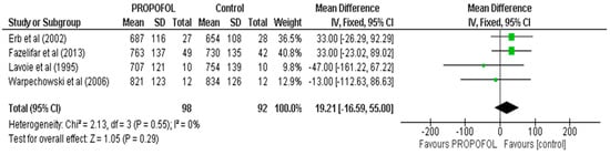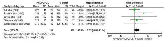 Forest Plot of propofol versus control for the CSNRT period.