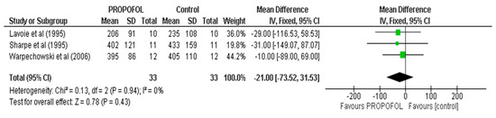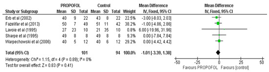 Forest Plot of propofol versus control for the VERP period.