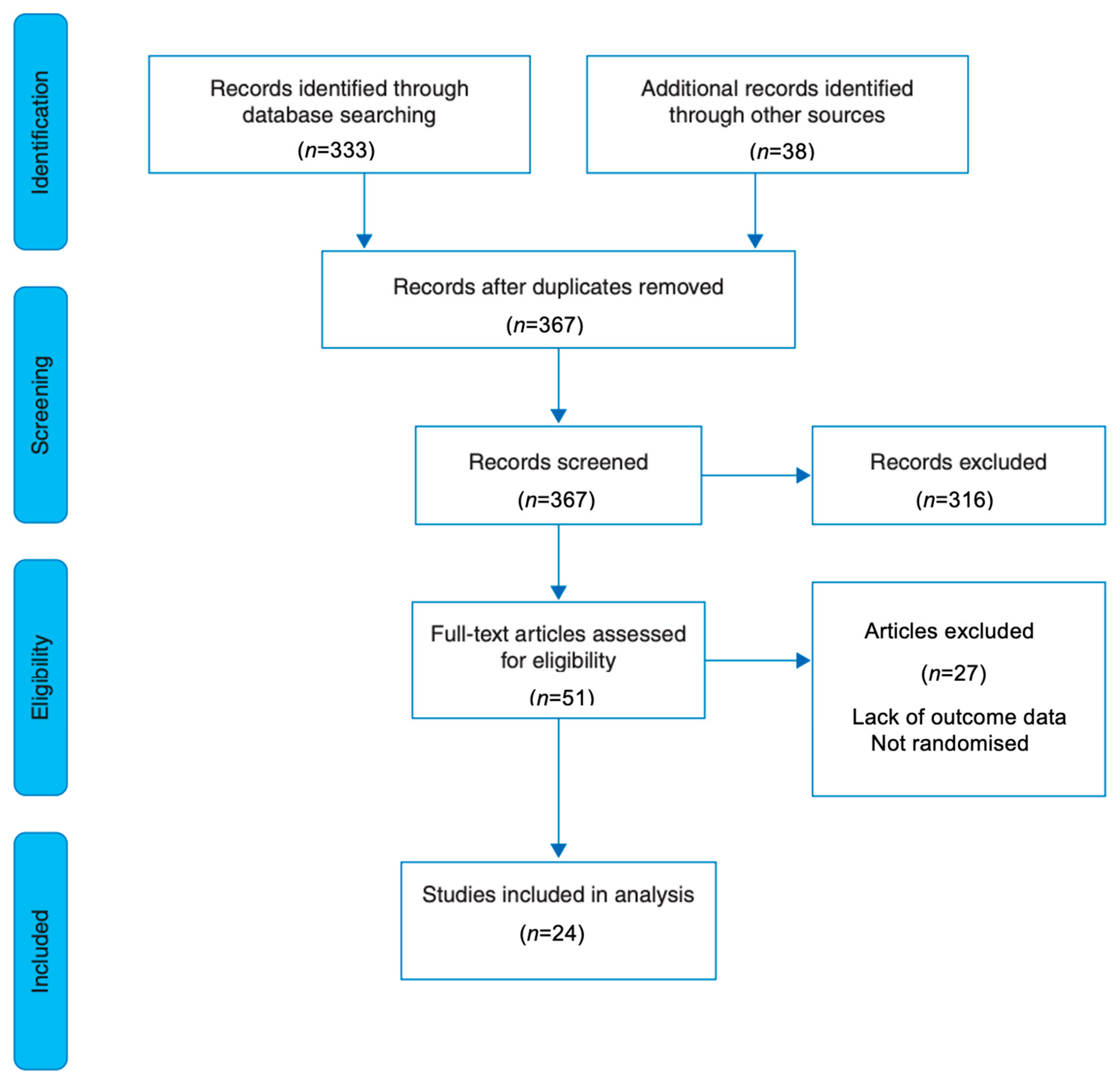 - Schünemann, H.; Higgins, J.; Vist, G.; Glasziou, P.; Akl, E.; Skoetz, N.; Guyatt, G.; on behalf of the Cochrane GRADEing Methods Group (formerly Applicability and Recommendations Methods Group) and the Cochrane Statistical Methods Group. Chapter 14: Completing “Summary of findings” tables and grading the certainty of the evidence. In Cochrane Handbook for Systematic Reviews of Interventions; Version 6.3; Cochrane: London, UK, 2022; Available online: https://training.cochrane.org/handbook/current/chapter-14 (accessed on 1 April 2023).