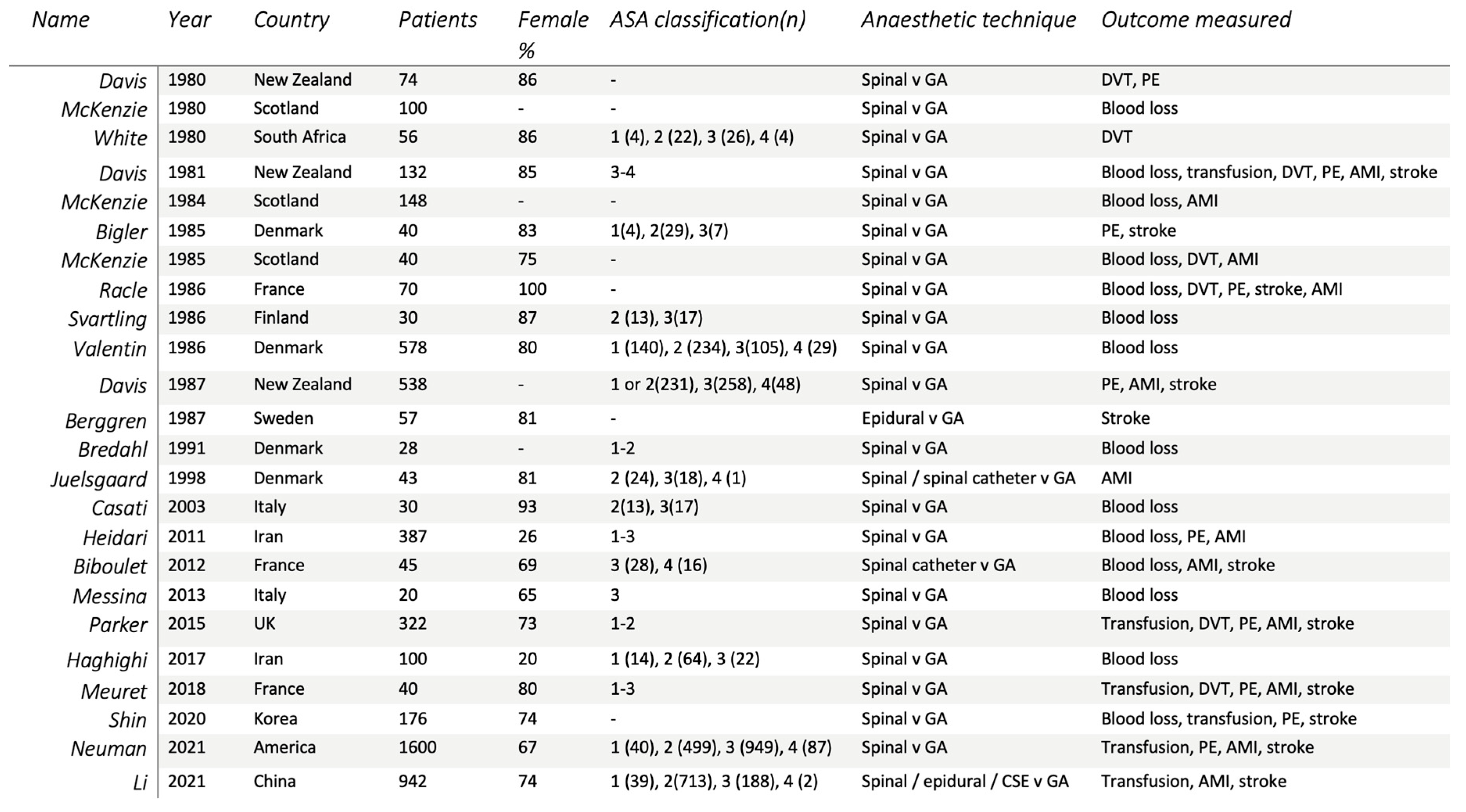 - McKenzie, P.J.; Wishart, H.Y.; Smith, G. Long-term outcome after repair of fractured neck of femur: Comparison of subarachnoid and general anaesthesia. Br. J. Anaesth. 1980, 56, 581–584. [Google Scholar] [CrossRef] [PubMed]