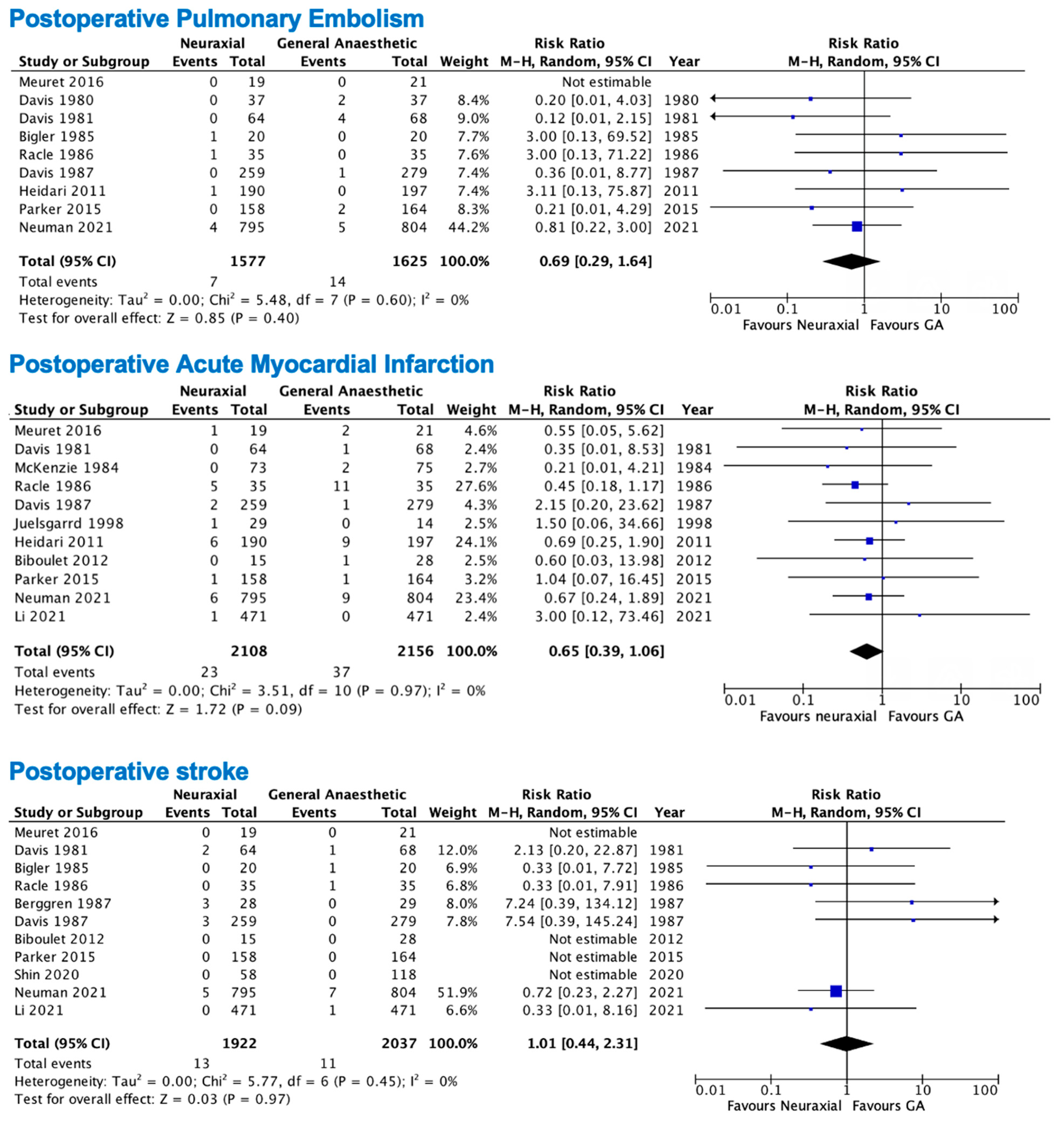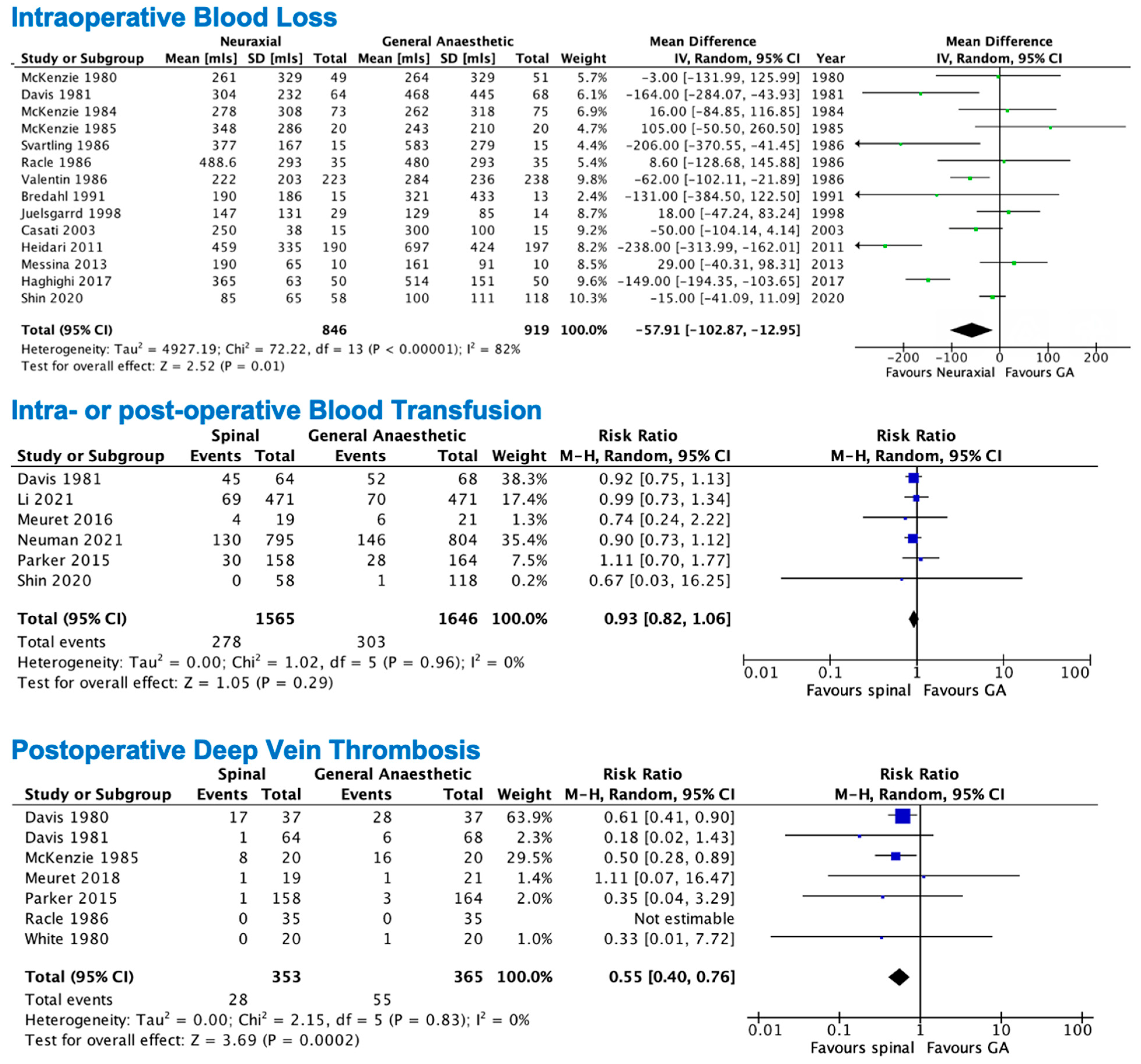 Chicago/Turabian StyleLyons, Alexandra, Nathan Yii, Leigh White, Matthew Bright, and Gina Velli. 2025. "The Effect of General Versus Neuraxial Anaesthesia on Bleeding and Thrombotic Outcomes in Neck of Femur Fracture Surgery: A Meta-Analysis" Anesthesia Research 2, no. 4: 25. https://doi.org/10.3390/anesthres2040025
