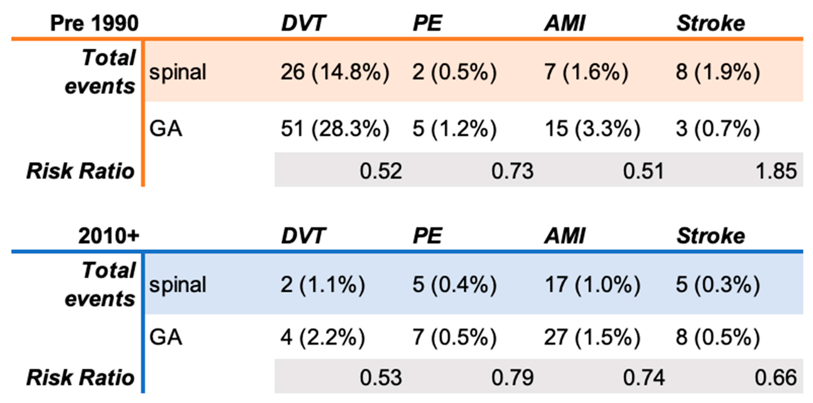 Lyons A, Yii N, White L, Bright M, Velli G. The Effect of General Versus Neuraxial Anaesthesia on Bleeding and Thrombotic Outcomes in Neck of Femur Fracture Surgery: A Meta-Analysis. Anesthesia Research. 2025; 2(4):25. https://doi.org/10.3390/anesthres2040025