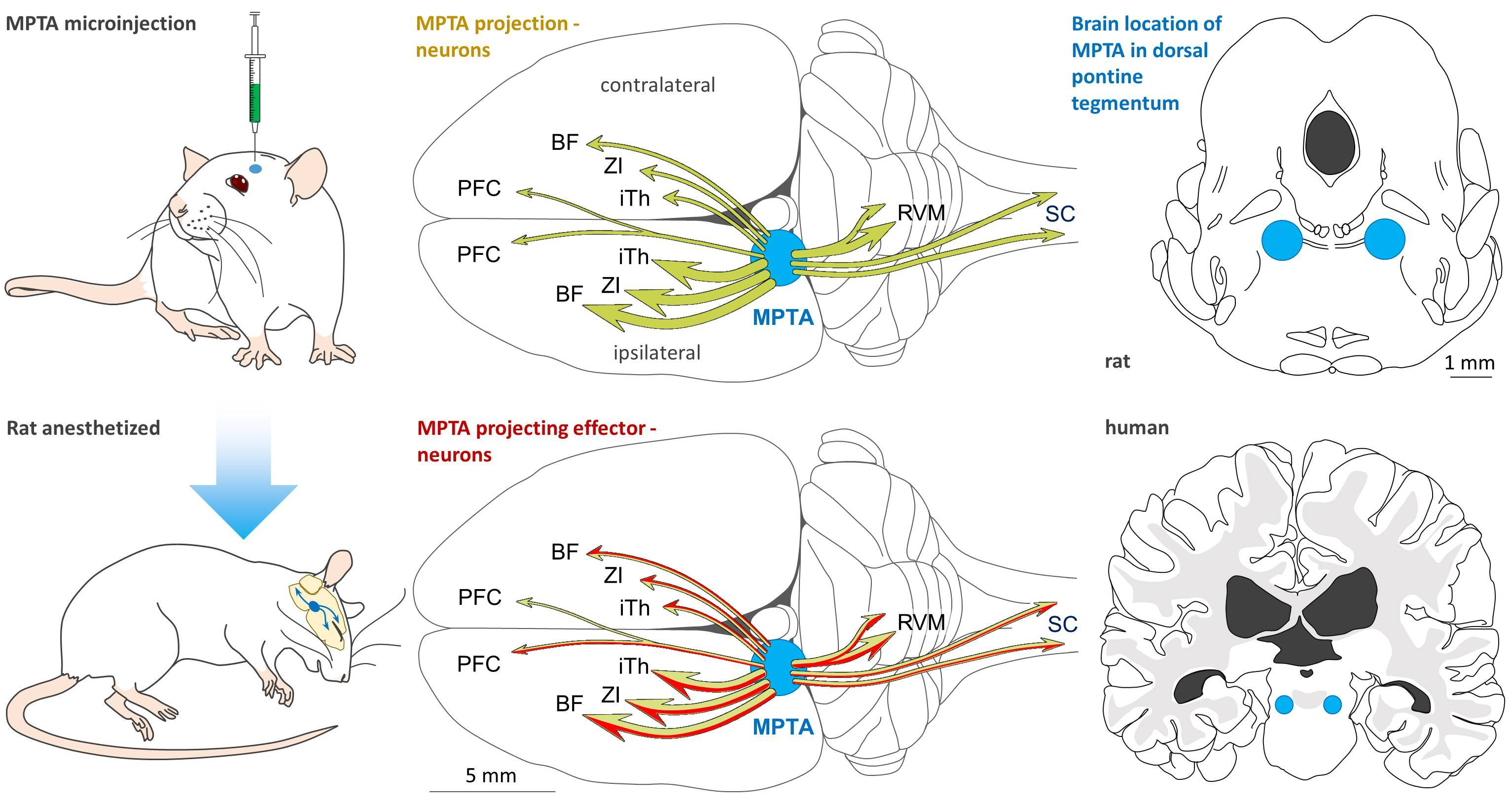 Axonal Projections of Neurons in the Brainstem Mesopontine Tegmental Anesthesia Area (MPTA) That Effect Anesthesia, Enabling Pain-Free Surgery