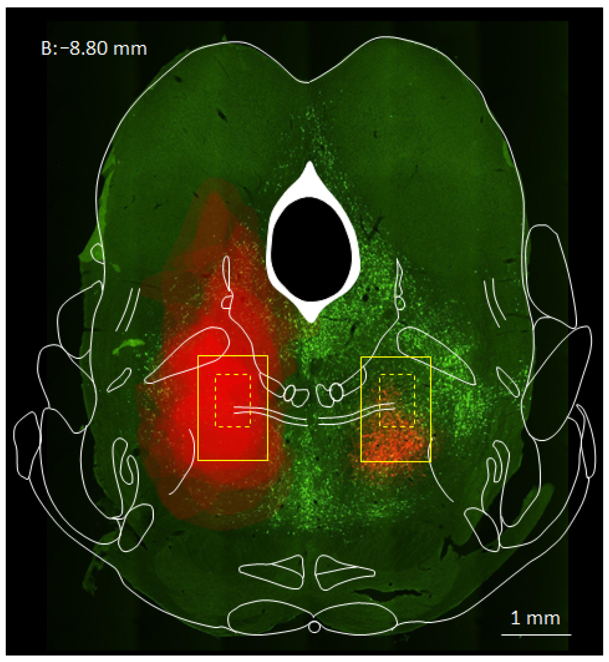 | MPTA Bilateral | PFC * Unilateral | BF Unilateral | iTh * Unilateral | ZI Unilateral | RVM Midline | SC d/v Horn | |