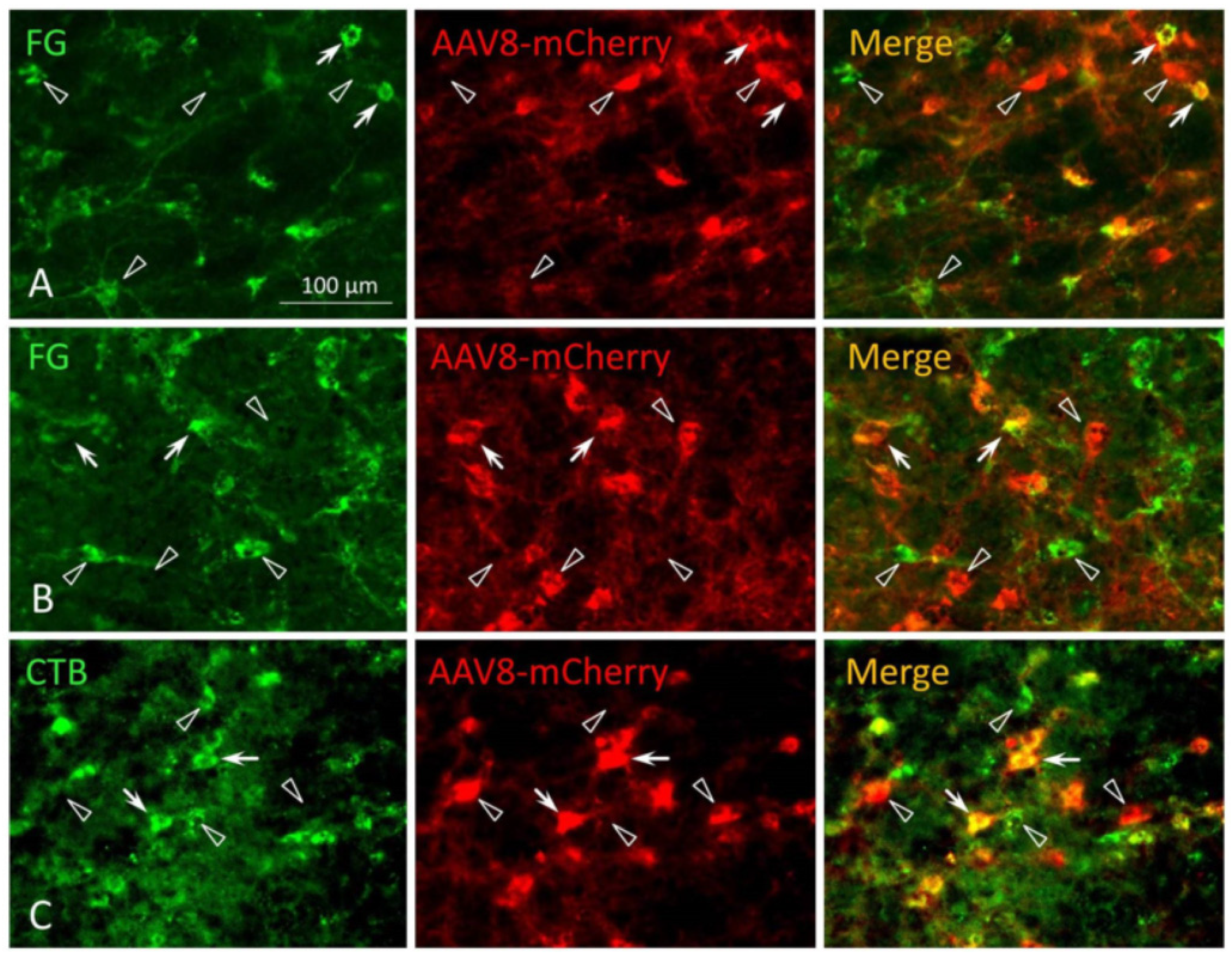| retrograde tracer FG/CTB | 2/1 | 2/2 | 3/1 | 2/2 | 3/3 | 1/1 | |