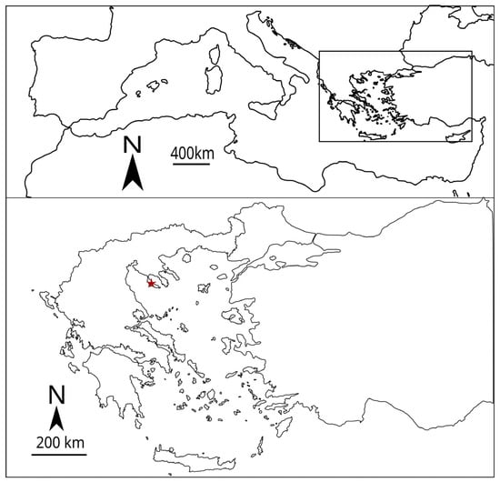 The locality of Fourka (FRK), Chalkidiki Peninsula, Greece, indicated with the red star.
