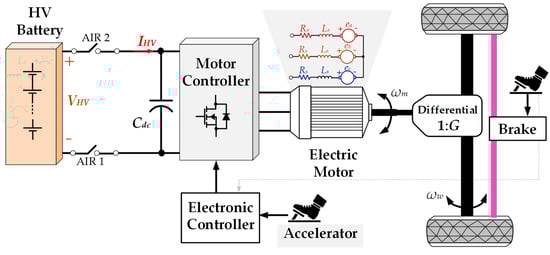 - The motor controller (traction inverter): Typically, this component is a DC-AC inverter for AC motors or a DC-DC chopper for DC motors.