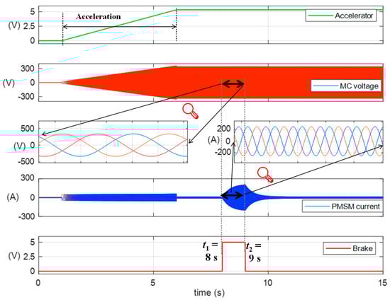 - Esfahani, F.N.; Darwish, A. Regenerative Braking for EVs Using PMSM with CHB as Bidirectional Traction Converter. In Proceedings of the 2022 IEEE 16th International Conference on Compatibility, Power Electronics, and Power Engineering (CPE-POWERENG), Birmingham, UK, 29 June–1 July 2022; IEEE: Piscataway, NJ, USA, 2022; pp. 1–7. [Google Scholar]