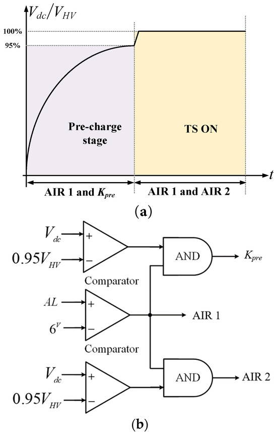 - If the TS is needed to be disconnected as in (2) or (3), a delay should be given between the command and the action to allow the motor controller to turn off the PMSM rotating magnetic field (RFE) before disconnecting the TS circuit. This is to protect the semiconductor devices (such as IGBTs or MOSFETs) from the voltage and current spikes that may occur. Usually, a time delay of around 200 ms should be sufficient to ensure the safe operation of the motor controller.