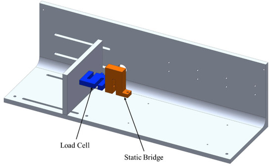 Two custom clamps are designed and connected to the system via bridge components; the static bridge connects the static clamp to the load cell (Figure 6), and a second bridge connects the dynamic clamp to the motion system (Figure 3). The bridges ensure vertical and horizontal alignment of the clamps (and the samples) with the load cell, crucial for load and strain measurement accuracy.