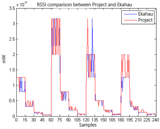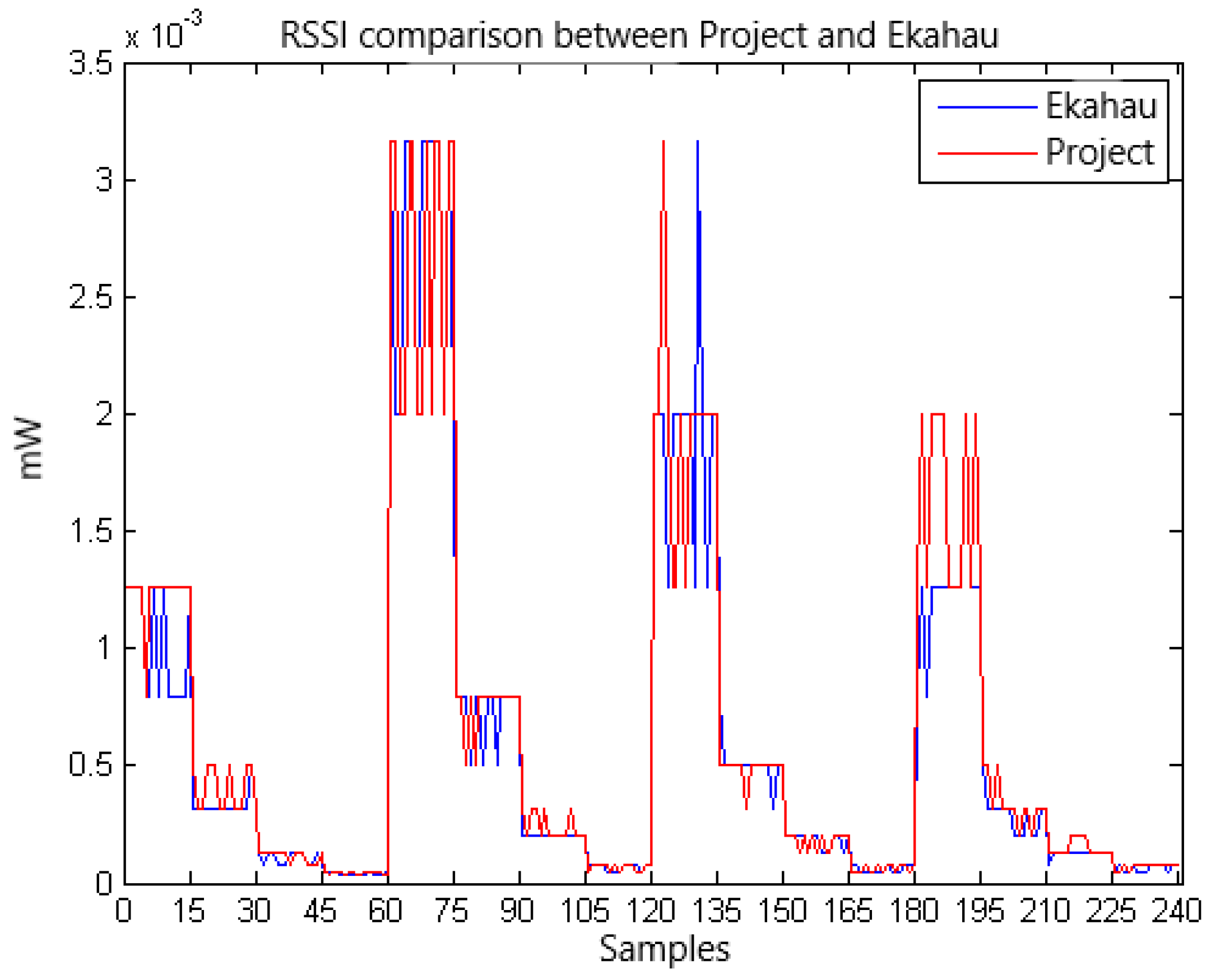 Figure 8, allows us to see how close the measurements are between the Ekahau Site Survey and the prototype.