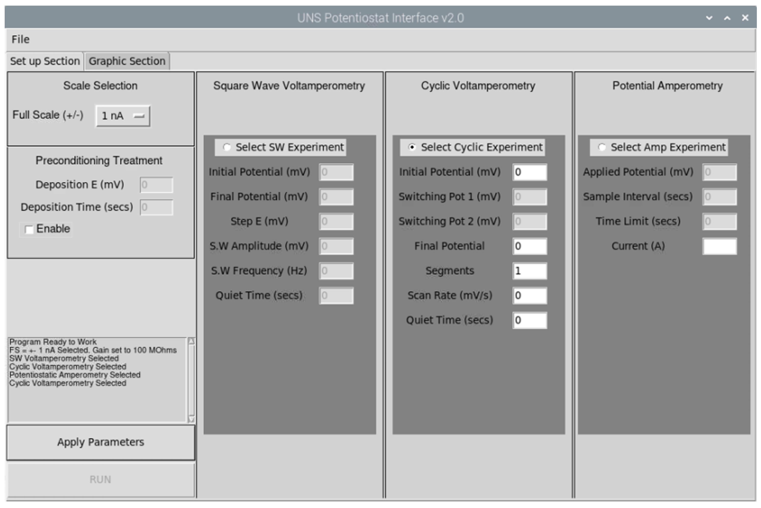 Initially, the entire control software was intended to be coded in Python. However, as the development of the equipment progressed, some issues with the operating system began to arise, highlighting the need for precise control over the microprocessor. Certain functionalities, such as square wave generation, required accurate timing control, which sometimes conflicted with the performance of the operating system. As a result, the main control firmware of the system was developed in C, as the lower-level libraries provided us with better control over these critical aspects.