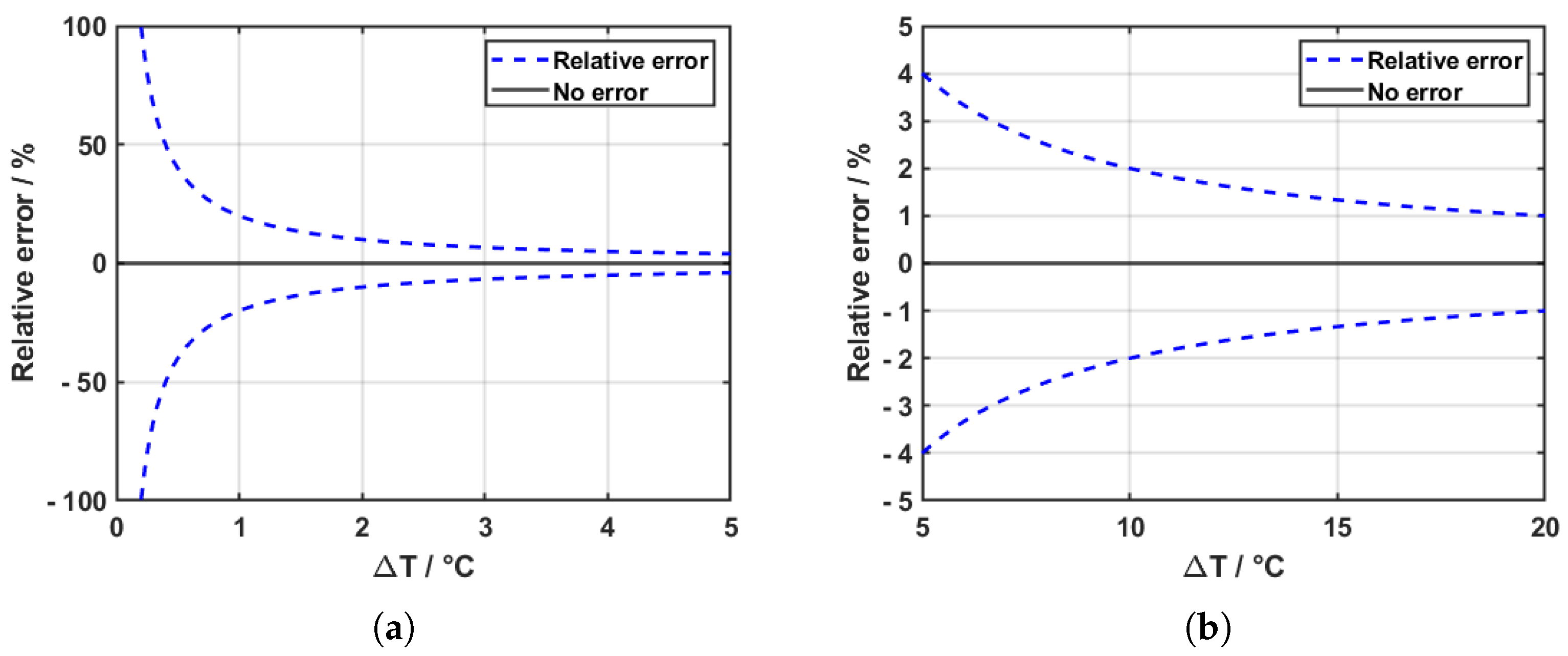 Figure 6 illustrates the resulting relative error in the heat transfer coefficient as a function of the true temperature difference, assuming a fixed temperature measurement uncertainty of