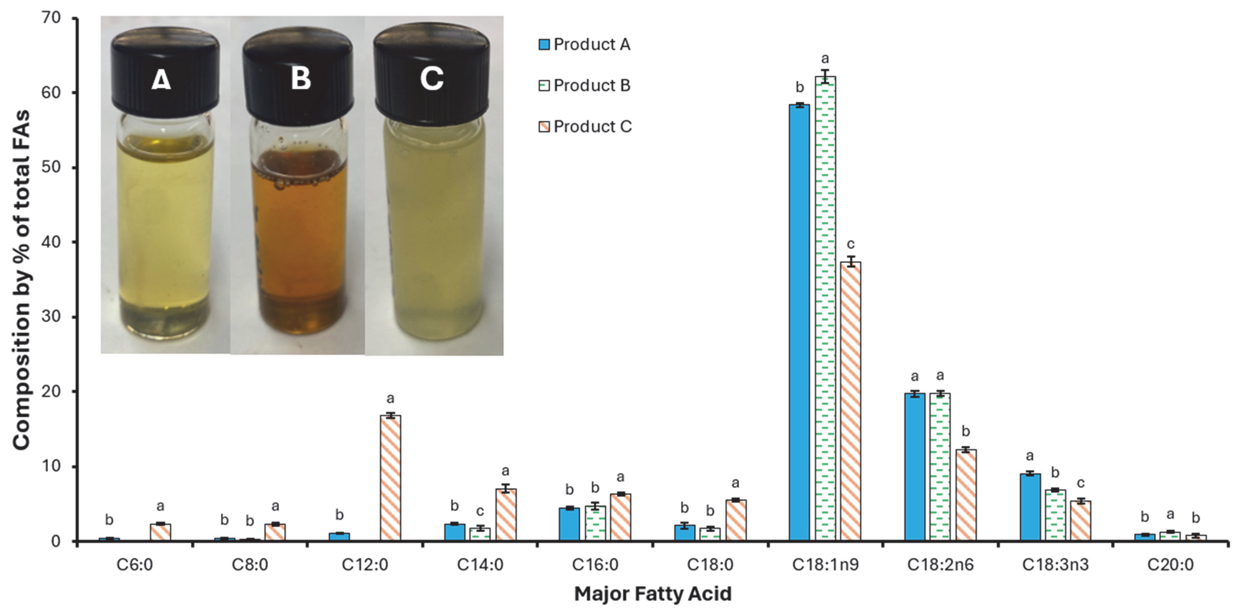 | Product B | 9.7 | 8.2 | 1.3 | Vegetable oil (Sunflower, canola; 3rd) |