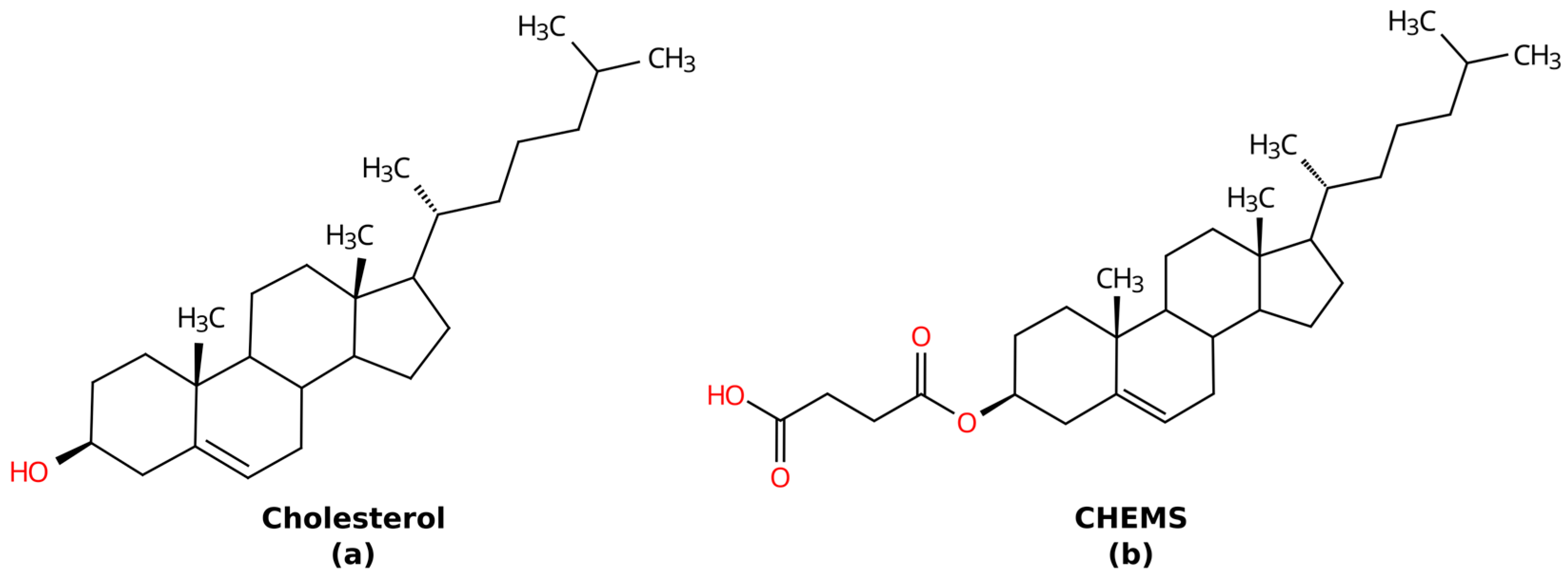 | Cholesterol hemisuccinate (CHEMS) | C31H50O4 | 0 | - | 486.7 | [12] |
